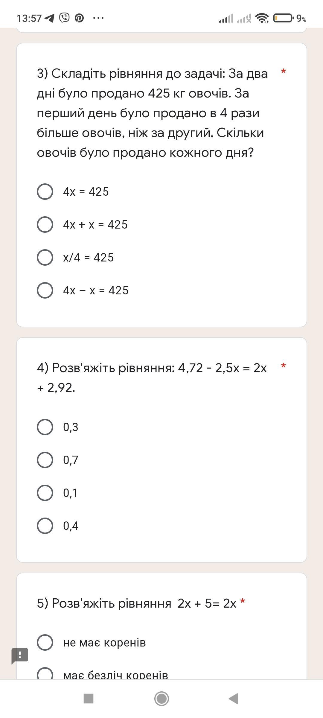 3) 4х- першого дня, х- другого дня. 4х+х=425