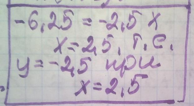 Найдите значение аргумента, при котором Функции y= -2,5x принимает значение, равное -6,25