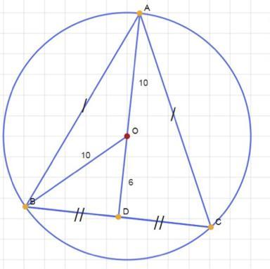 ВD= √(ВО^2-OD^2)= √(100-36)=8