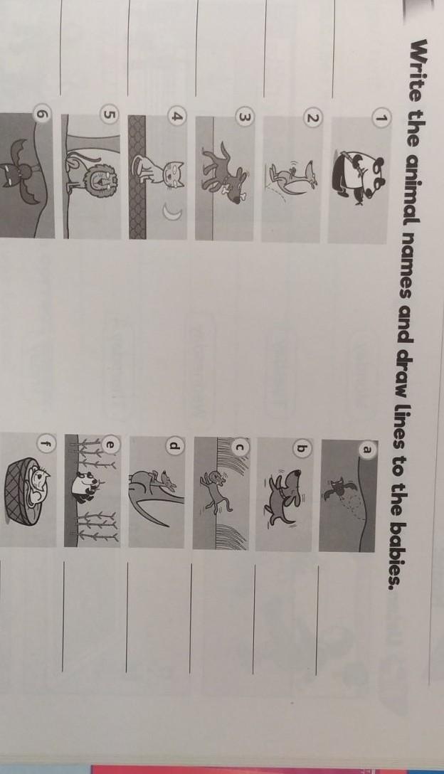 Write the animal names and draw lines to the babies. а 2 b 3 4 5 LG the sentences поможіть пж