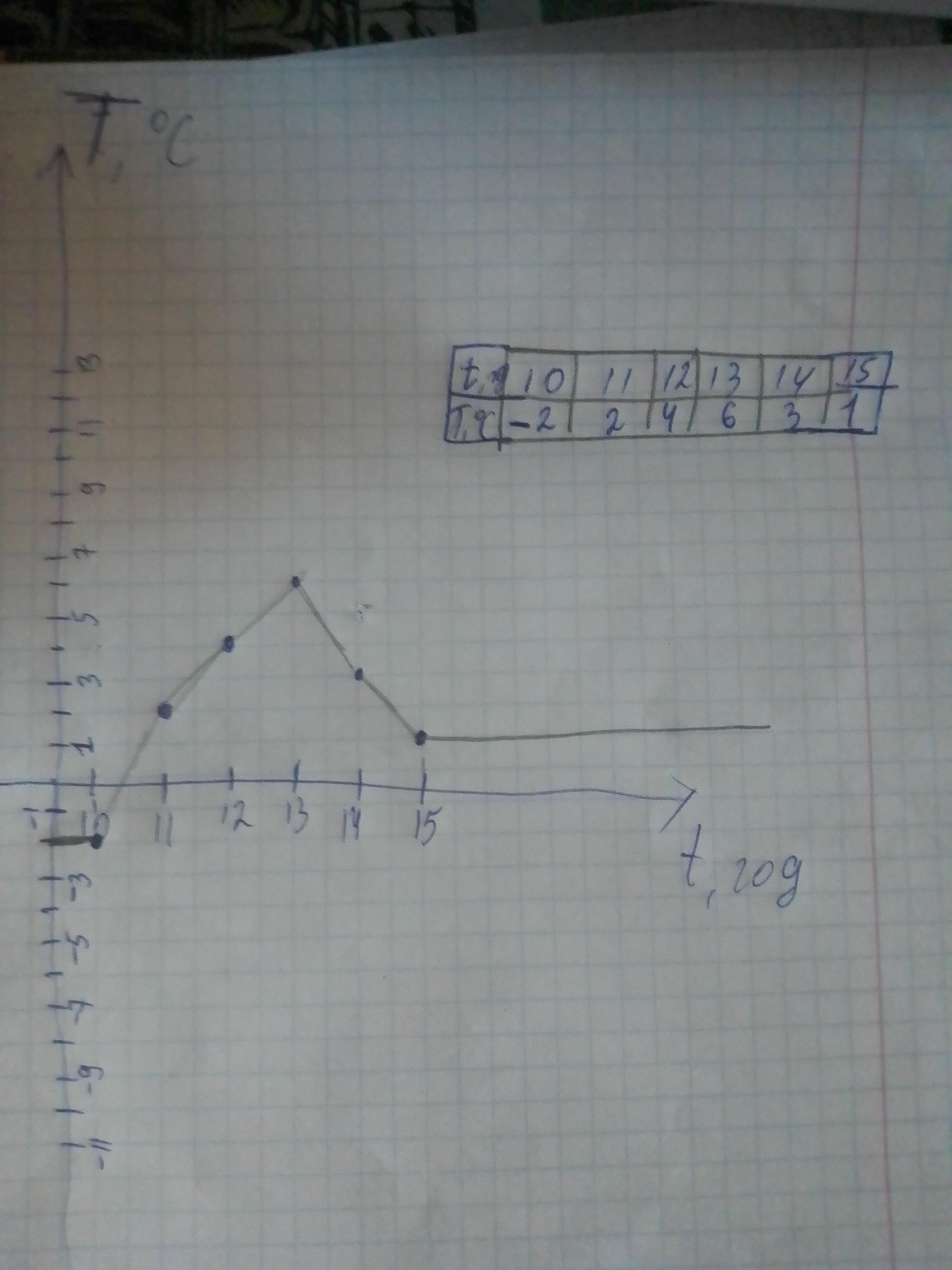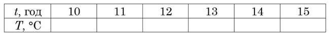 Виміряйте температуру за своїм вікном і заповніть таблицю. Побудуйте графік зміни температури з 10 год до 15 год за отриманими даними:
