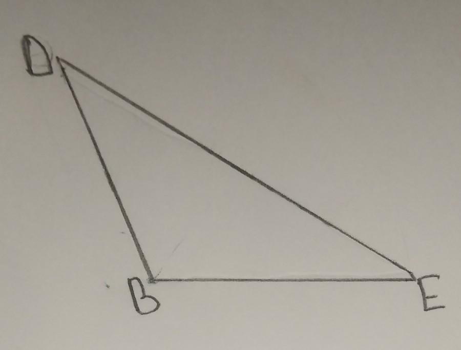Для этого ставим иглу циркуля в заданную точку на прямой. Затем проведим 2 равные дуги с обеих сторон от заданной точки. Отмечаем точки пересечения дуг и проводим через них прямую. Отрезок BO будет являться выстотой треугольника BDE.