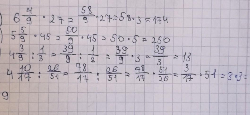 г) 4 10/17:26/51=78/17:26/51=78/17*51/26=3/17*51=3*3=9