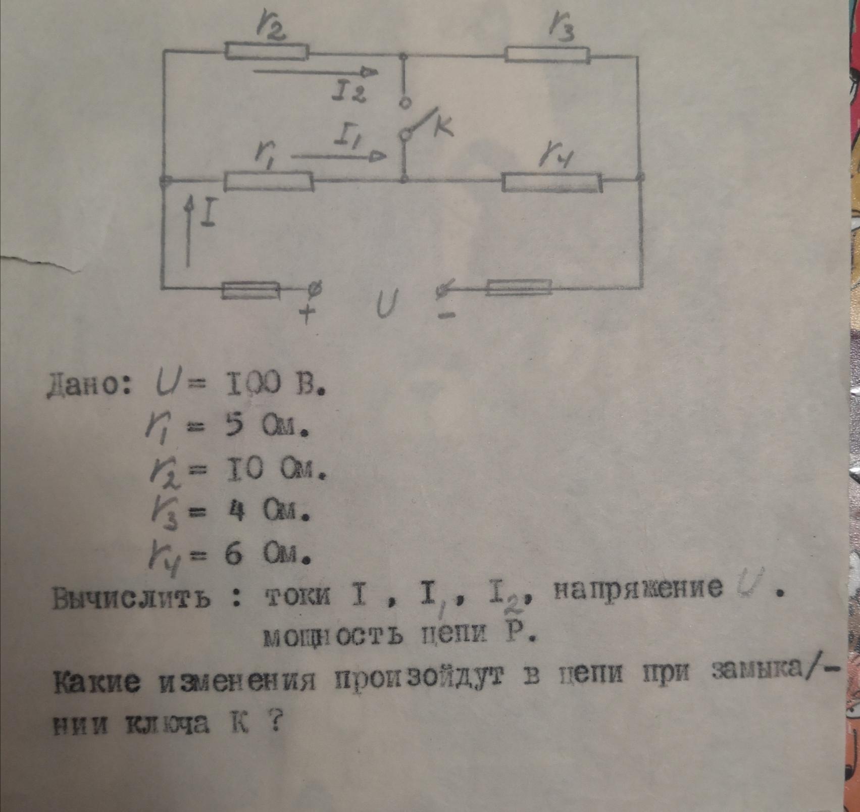 Какие изменения произойдут в цепи при замыкании ключа К?