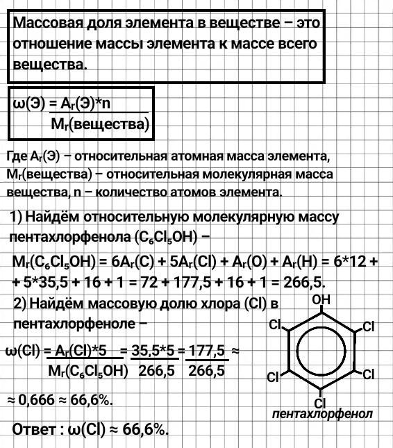 Структурна формула одного з найпростіших фунгіцидів пентахлорофенолу — С6Cl5OH. Обчисліть масову частку Хлору в цій речовині.