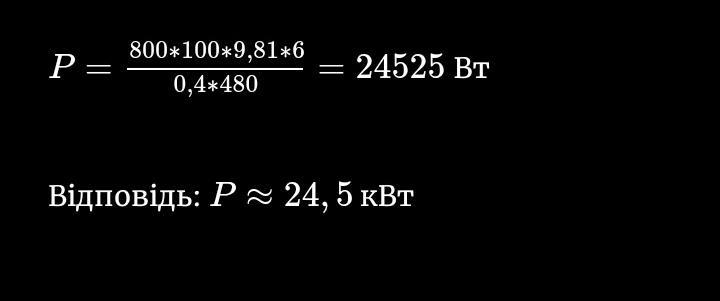 2.3. Яку потужність має насос, що рівномірно піднімає 100 м³ нафти на висоту 6 м за 8 хв? ККД насоса становить 40 %. Густина нафти дорівнює 400 кг/м³