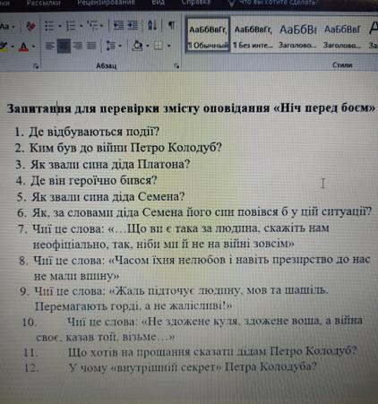 12. У чому внутрішній секрет Петра Колодуба - цитата: Що наше життя? Що наша кров, коли страждає вся наша земля, увесь народ? — голос капітана зазвучав, як бойова сурма. — Я, хлопці, у бою сторукий, помножений стократ на гнів і ненависть