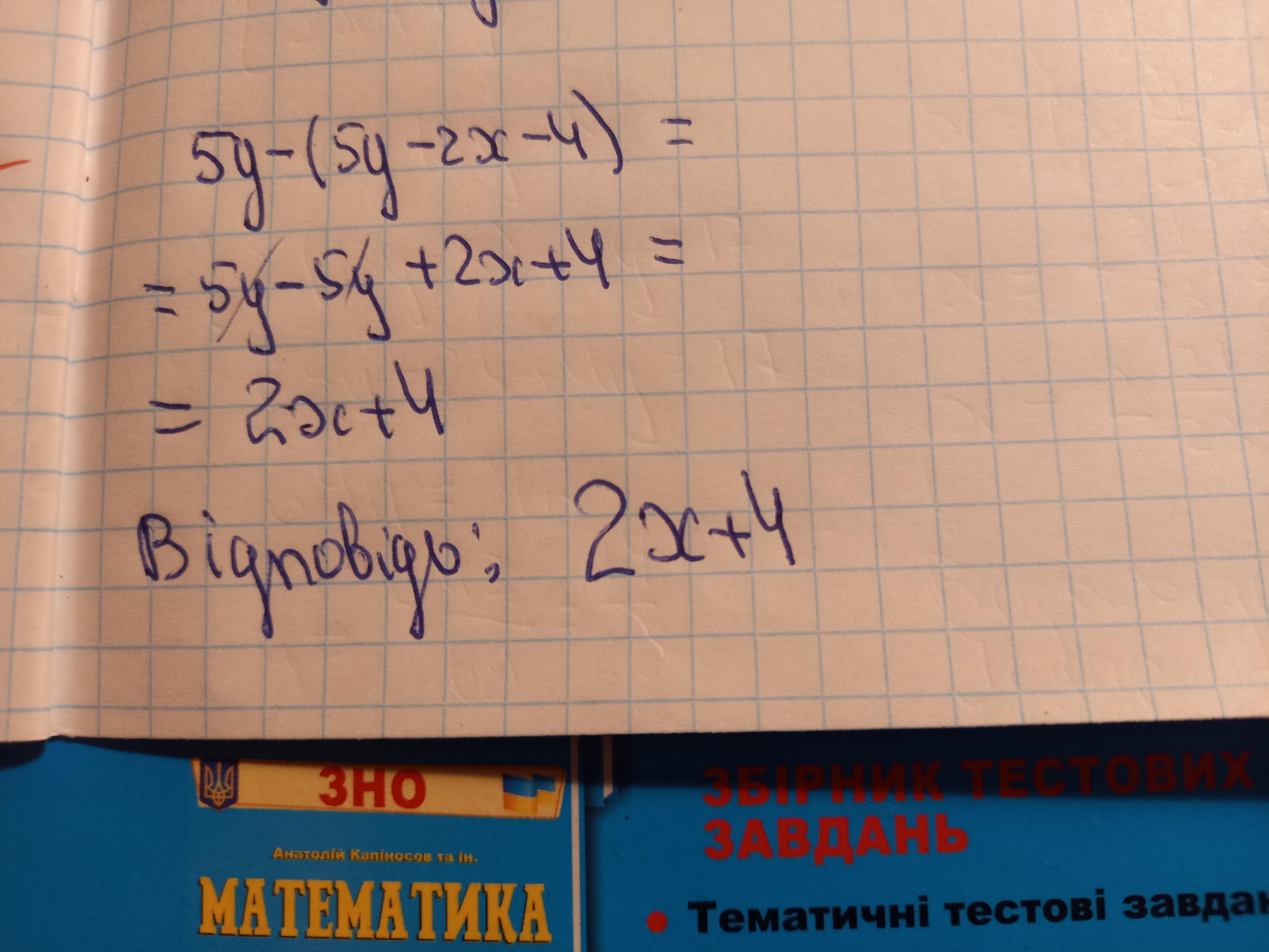 5y-5y+2x+4=>2x=-4, x=-2