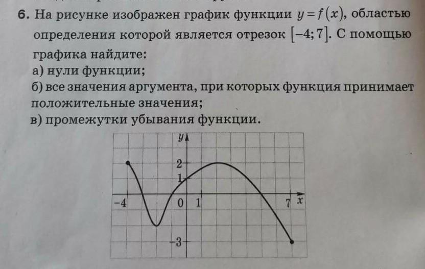 в)x∈[-4;-2]U[2;7]