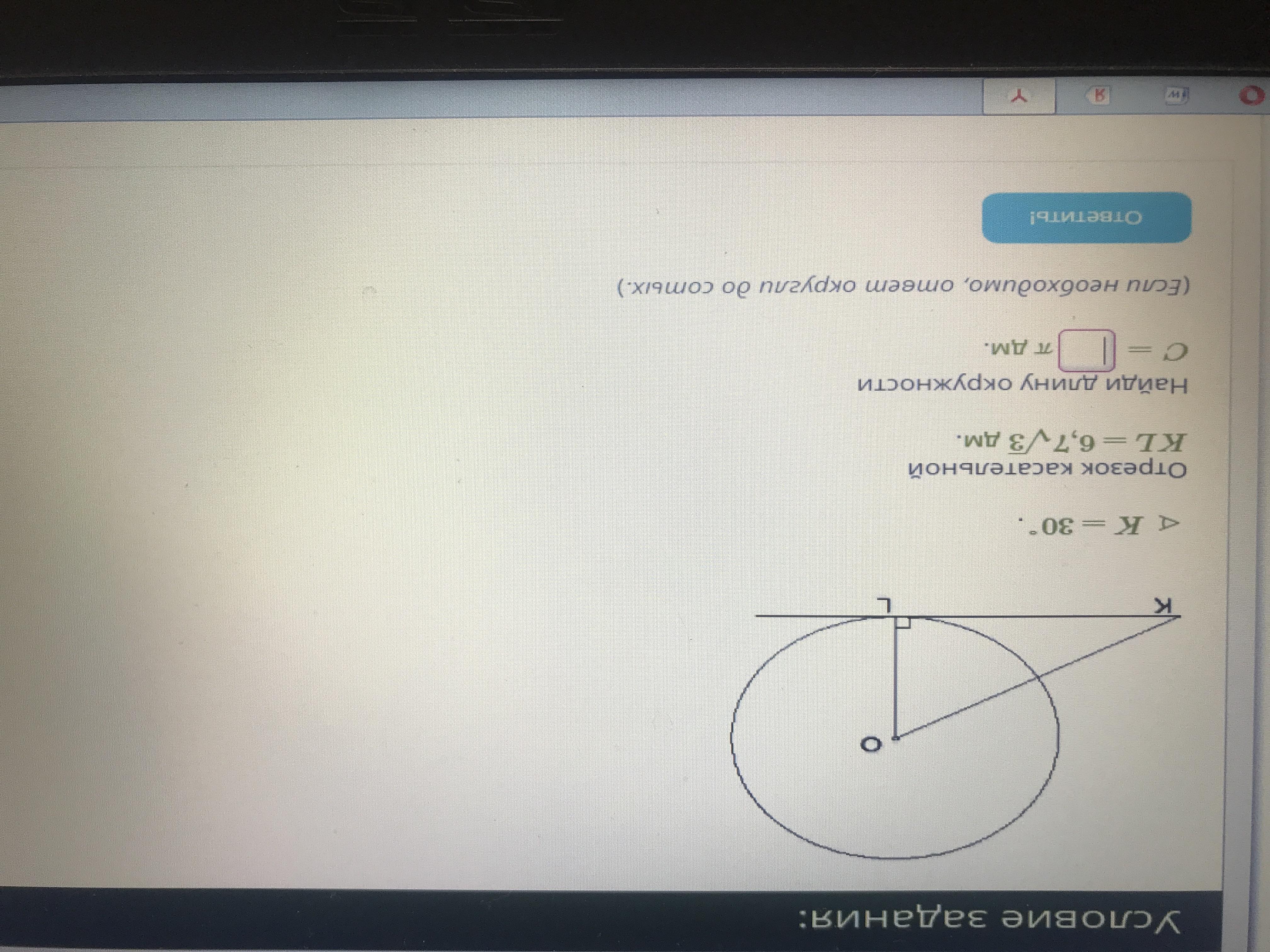 отсюда следует, что OL=6,7, а длина окружности = 2пиР => 2*6.7пи= 13,4пи