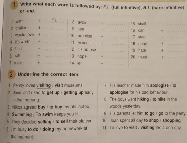 3 would like - full infinitive