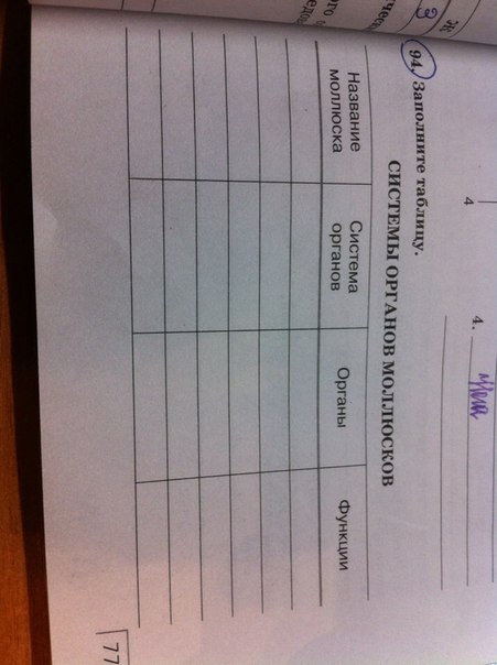 заполните таблицу.системы органов моллюсков.