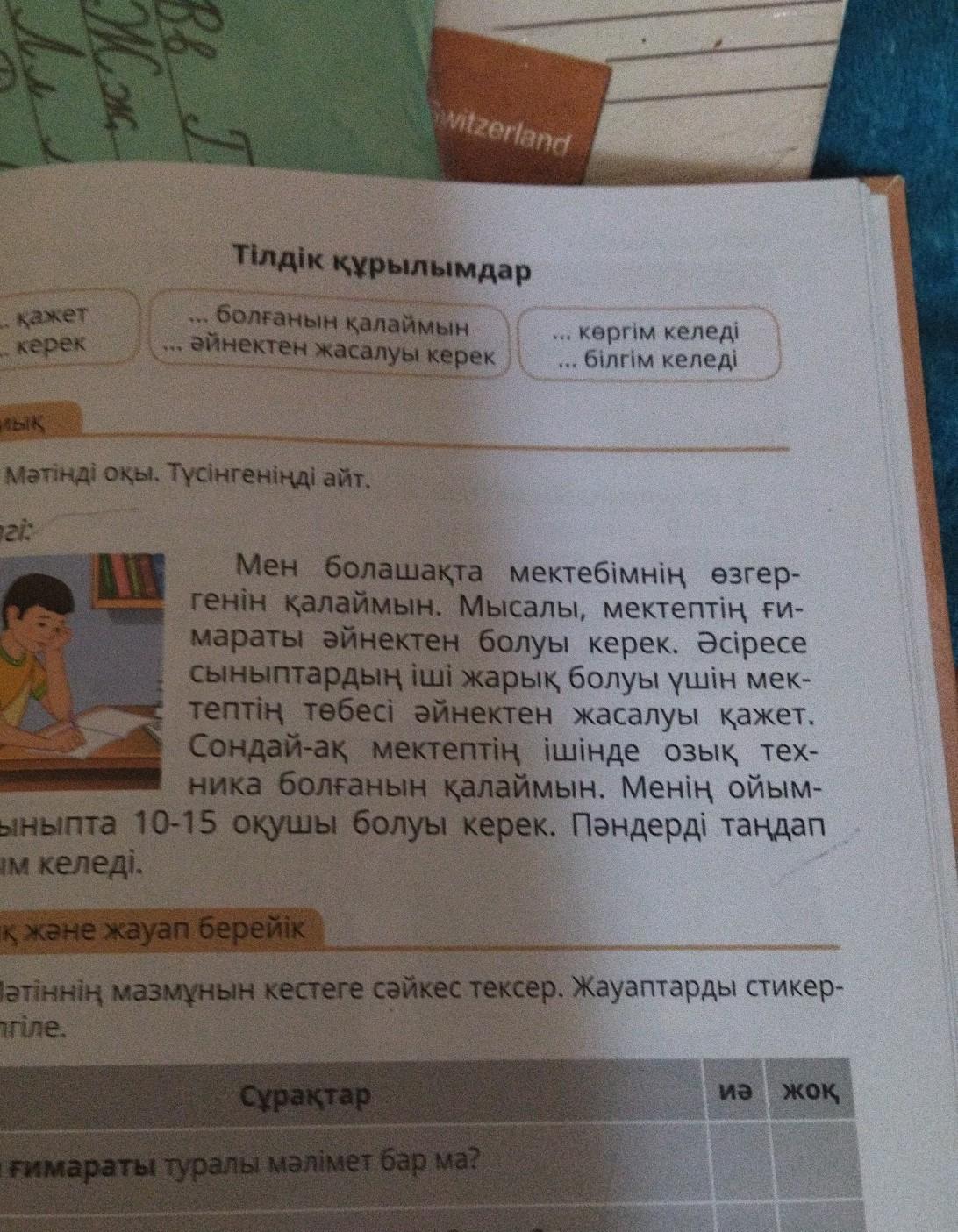 ПоМОГИТЕЕЕЕ СРОЧНОО НАДО СОСТАВИТЬ 6-5 ПРЕДЛОЖЕНИЙ ПО КАЗАХСКОМУ ПО ТЕКСТУ "менің қиялымдағы мектеп"