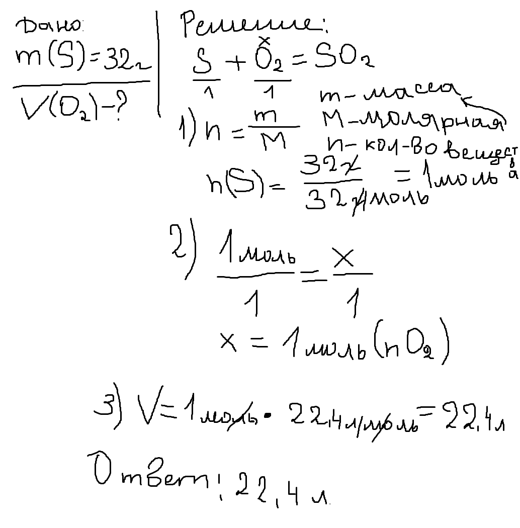 Сначала нужно найти колличество серы по формуле , где n-колличество вещества, m-масса, M-молярная масса (её находят, пользуясь таблицей Мегделеева).