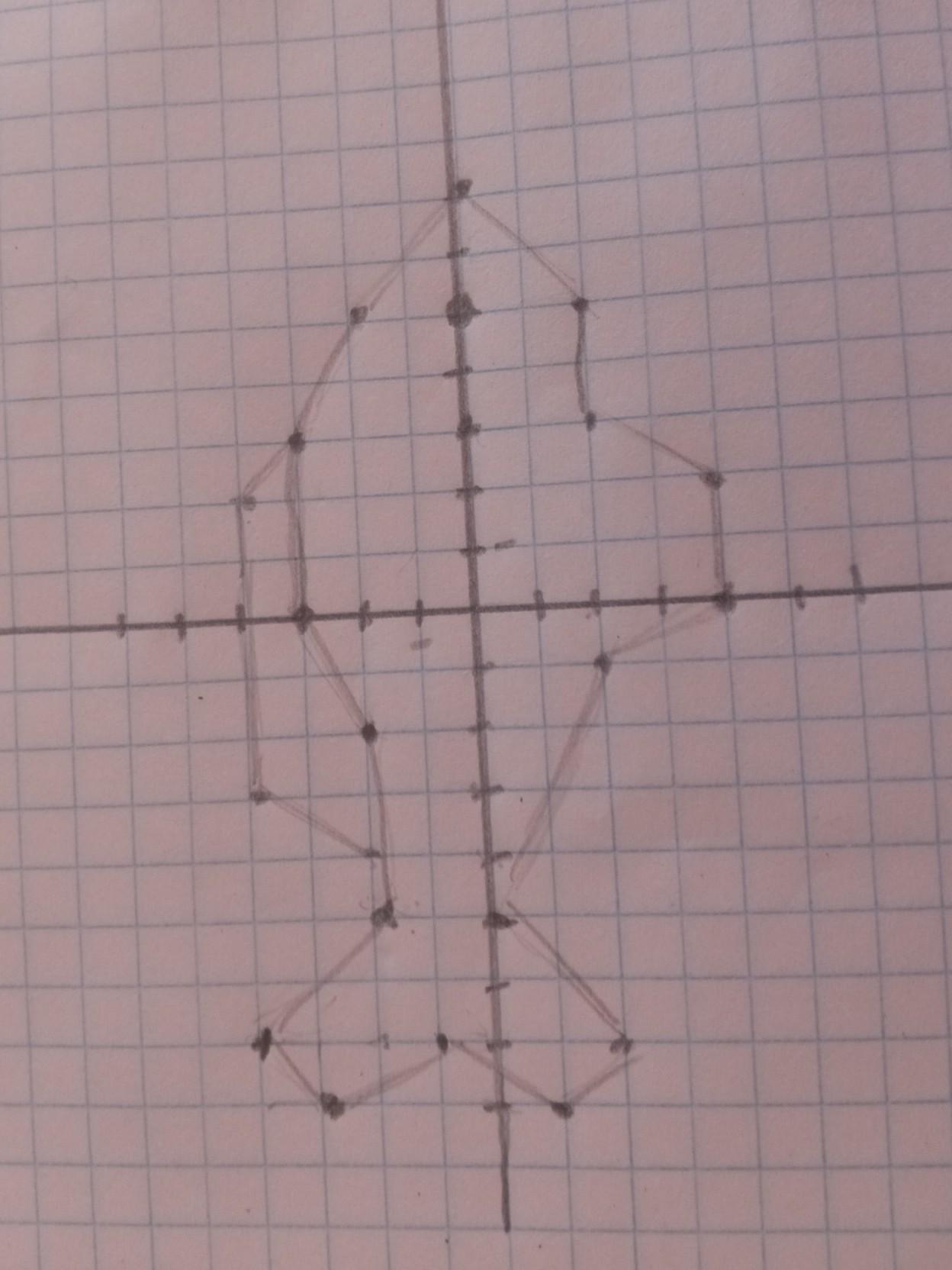 Побудуйте фігуру за координатами: (3;3),(0;3),(-2;2),(-5;2),(-7;4),(-8;3),(-7;1),(-8;-1),(-7;-2),(-5;0),(-1;-2),(0;-4),(2;-4),(3;-2),(5;-2),(7;0),(5;2),(3;3),(2;4),(-3;4),(-4;2)