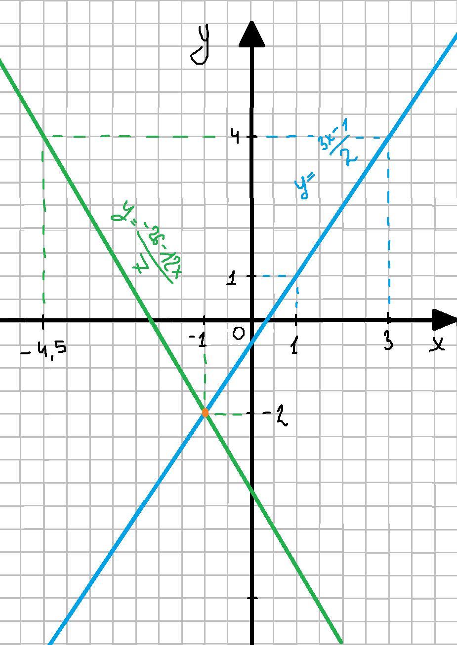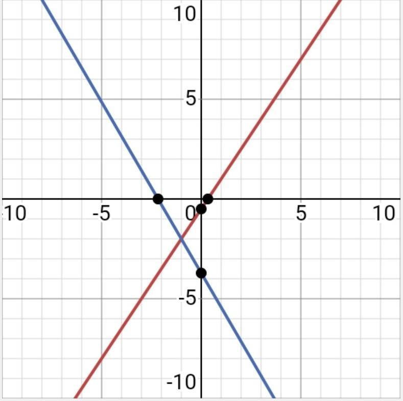 Видно, что прямые пересекаются в точке (-1;-2), что и является решением