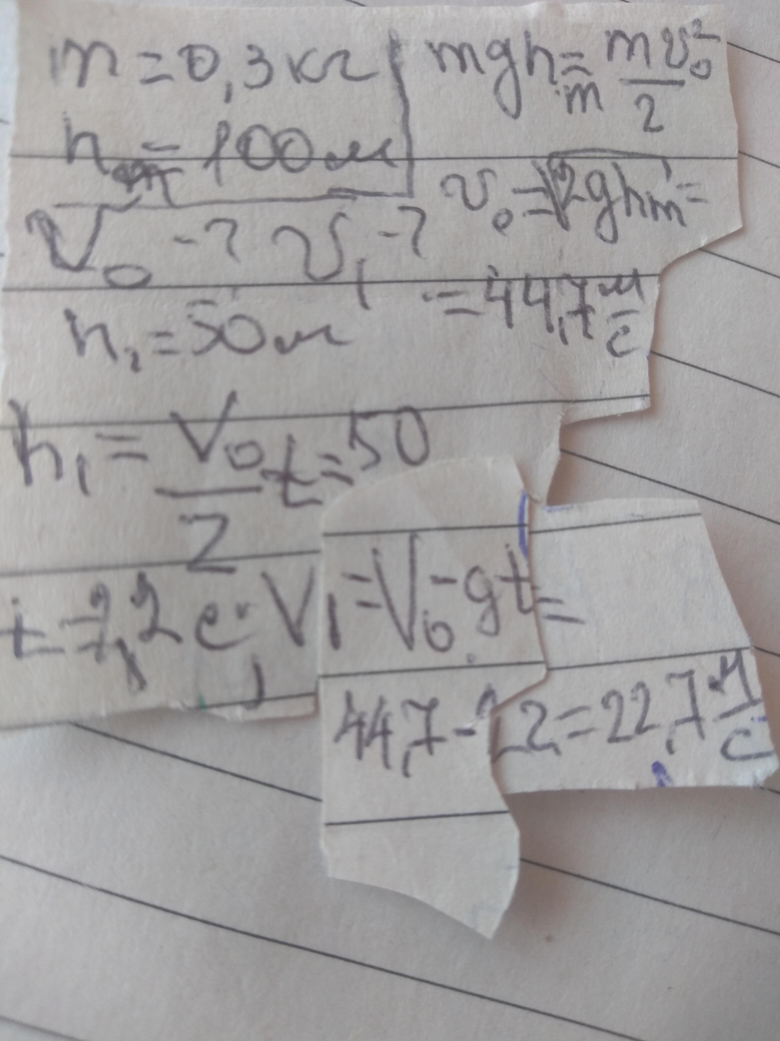 Тіло масою 300 г кинуте вгору досягло висоти 100 м. З якою швидкістю воно