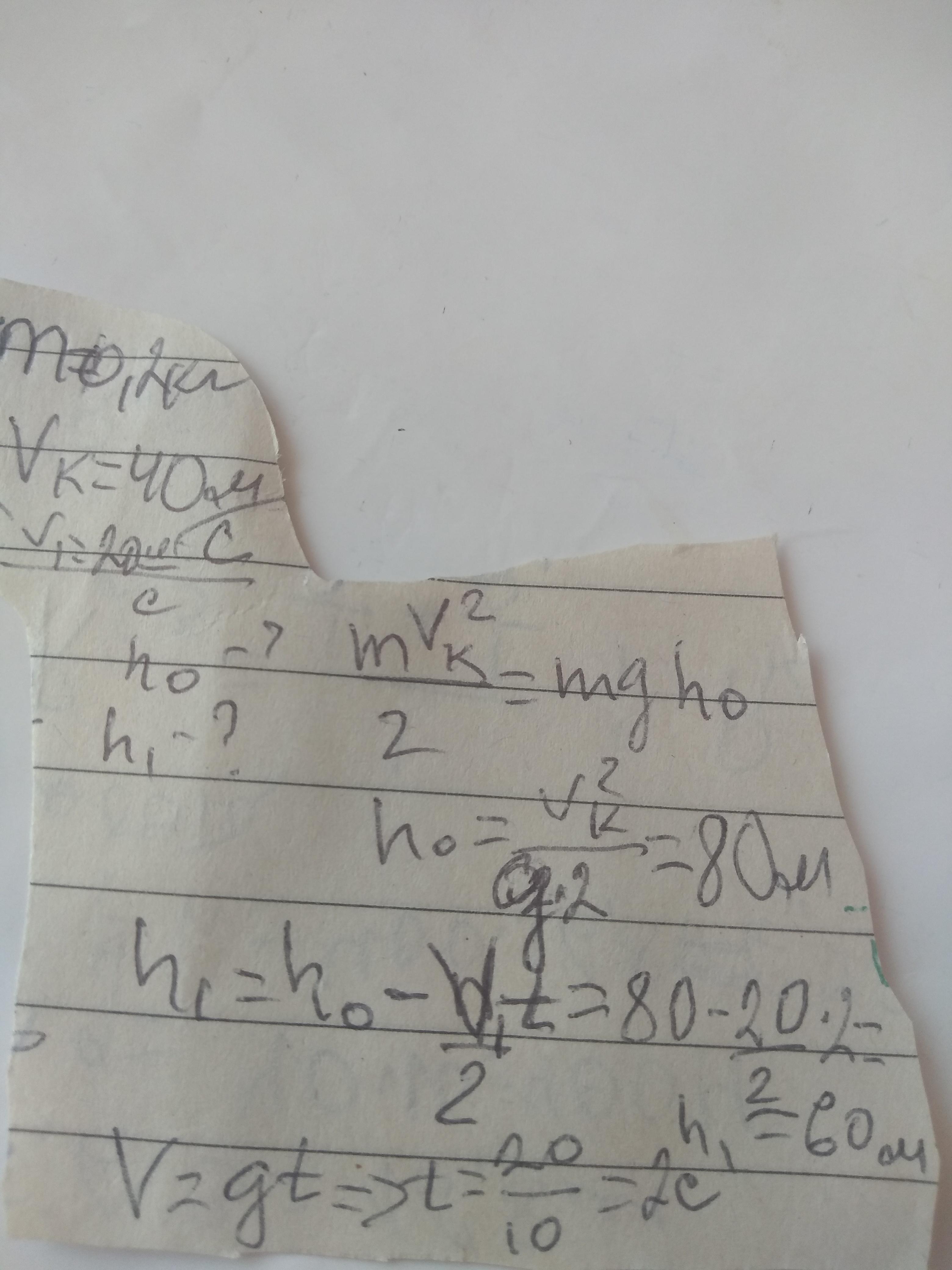 швидкість 40 м/с. З якої висоти впало тіло? На якій висоті його швидкість