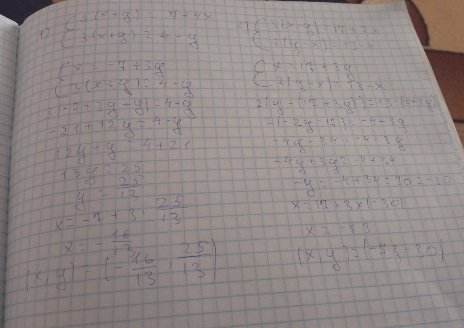 128 Решите системы уравнений (1279—1283): 5(x + y) = 7 + 4 x, |3(х - у) = 17 + 2х, 1279. 1) 2) 3(x+y) = 4-у; 2(у - x) 13 - x 1287. Найди если к (9, 4x (17. 1-6,5 - Ag 90