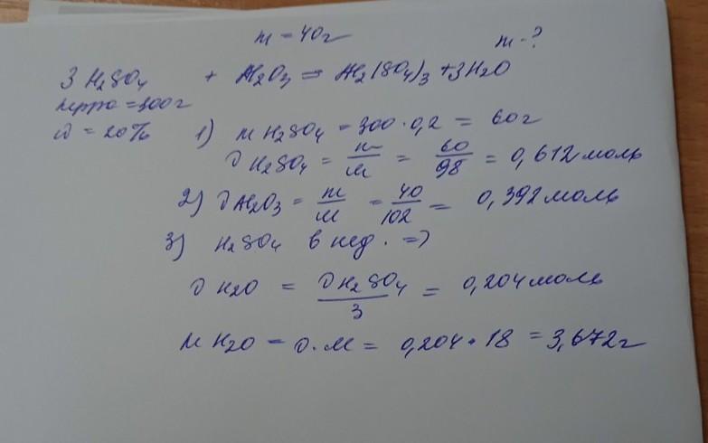 На 300 г 20%-го раствора серной кислоты подействовали 40 г оксида алюминия. Найдите массу образовавшейся воды.
