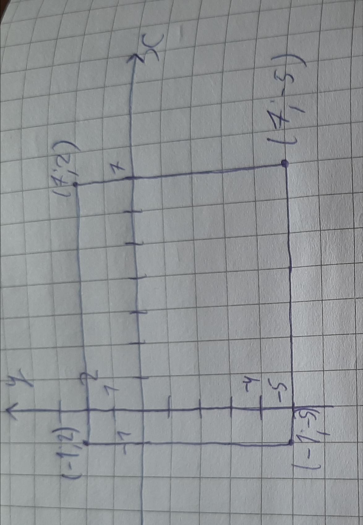 Побудуйте точки та з'єднайте їх послідовно:(-1,2),(7,2),(7,-5),(-1,-5),(-1,2), будь ласка,пж