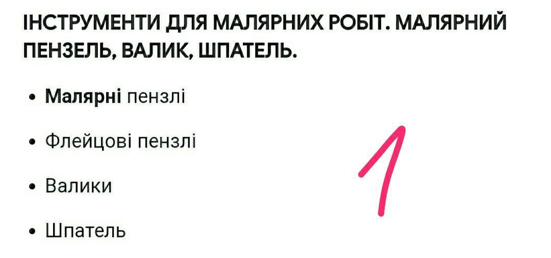 1. Назви основні інструменти та пристосування, необхідні для малярних