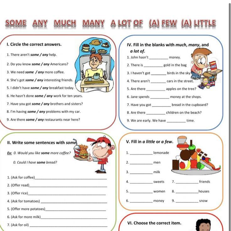Чтобы сделать упражнение I воспользуемся правилом, что some для утвердительных, а any для отрицательных.