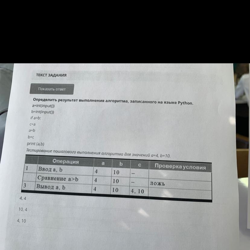 4 10 так и выдаст так как условие не выполнилось следовательно ничего не изменилось