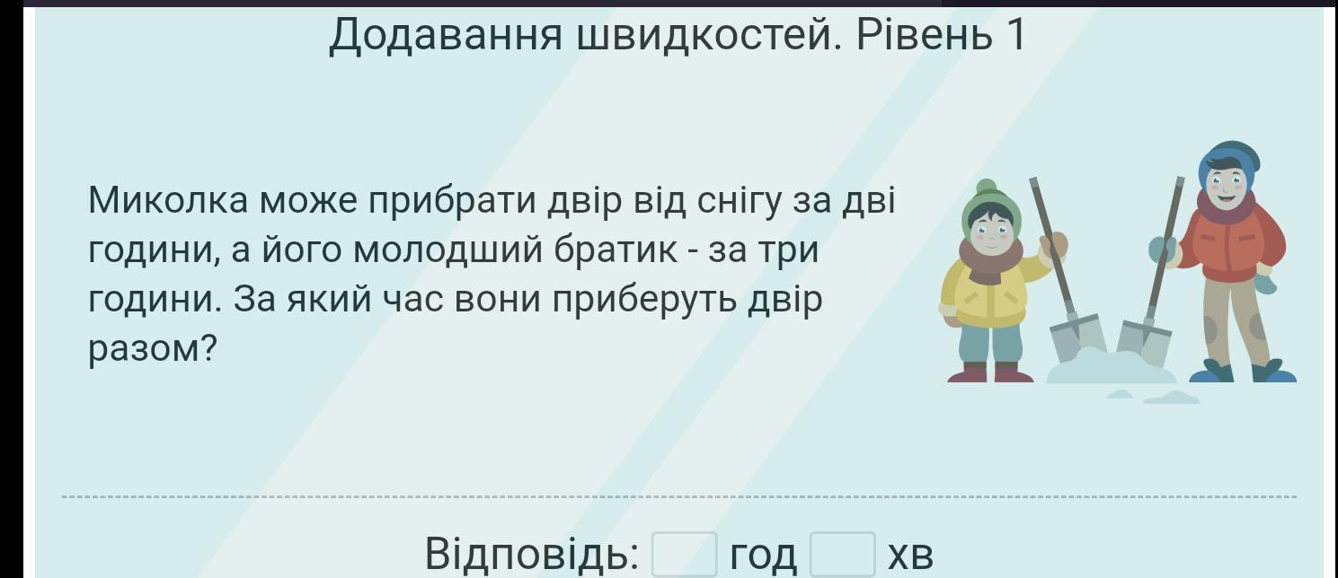 Разом вони приберуть двір за 1 годину та 30 хвилин