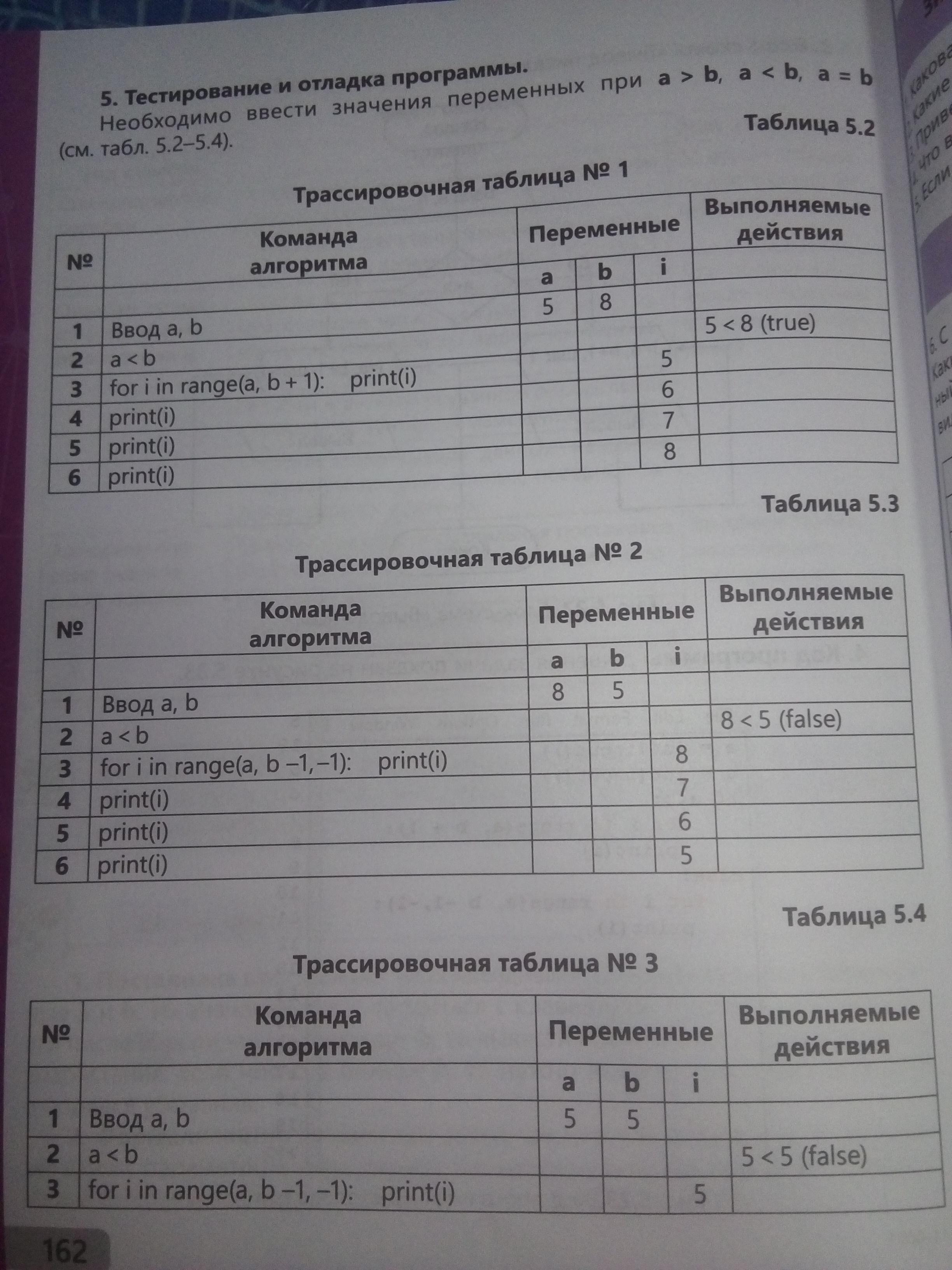 a= 5 b= 8 i= 8 выполняемые действия= 5 < 8 (true)