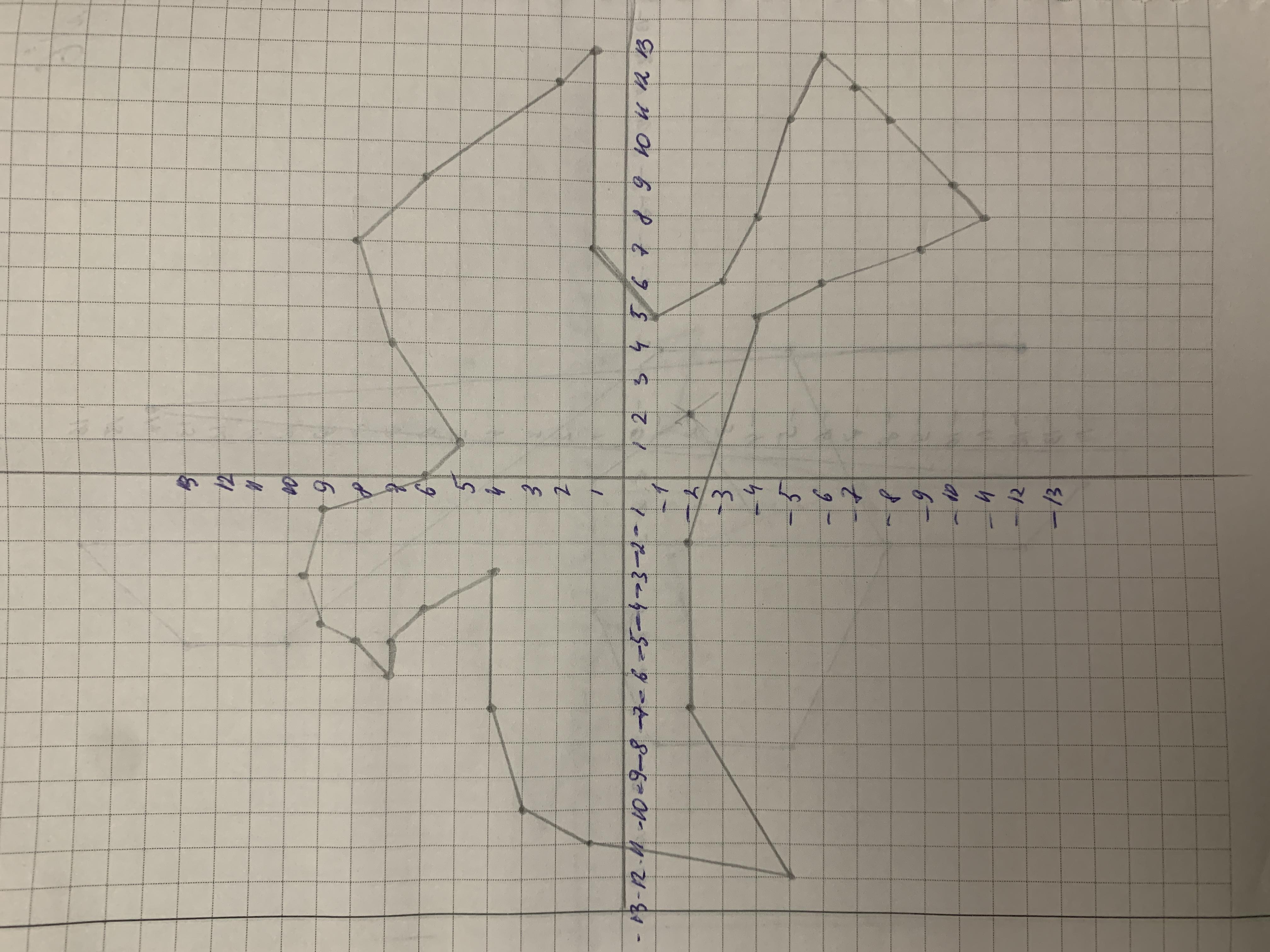 Постройте фигуру по точкам в ситеме координат, соединяя их последовательно отрезками. Единичный отрезок - 1 клеточка. Какой рисунок у вас получился?