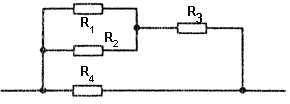 На рисунке дана схема смешанного соединения четырех резисторов по 10 Ом каждый. Найди общее (эквивалентное) сопротивление этого участка цепи. Ответ: 6 Ом
