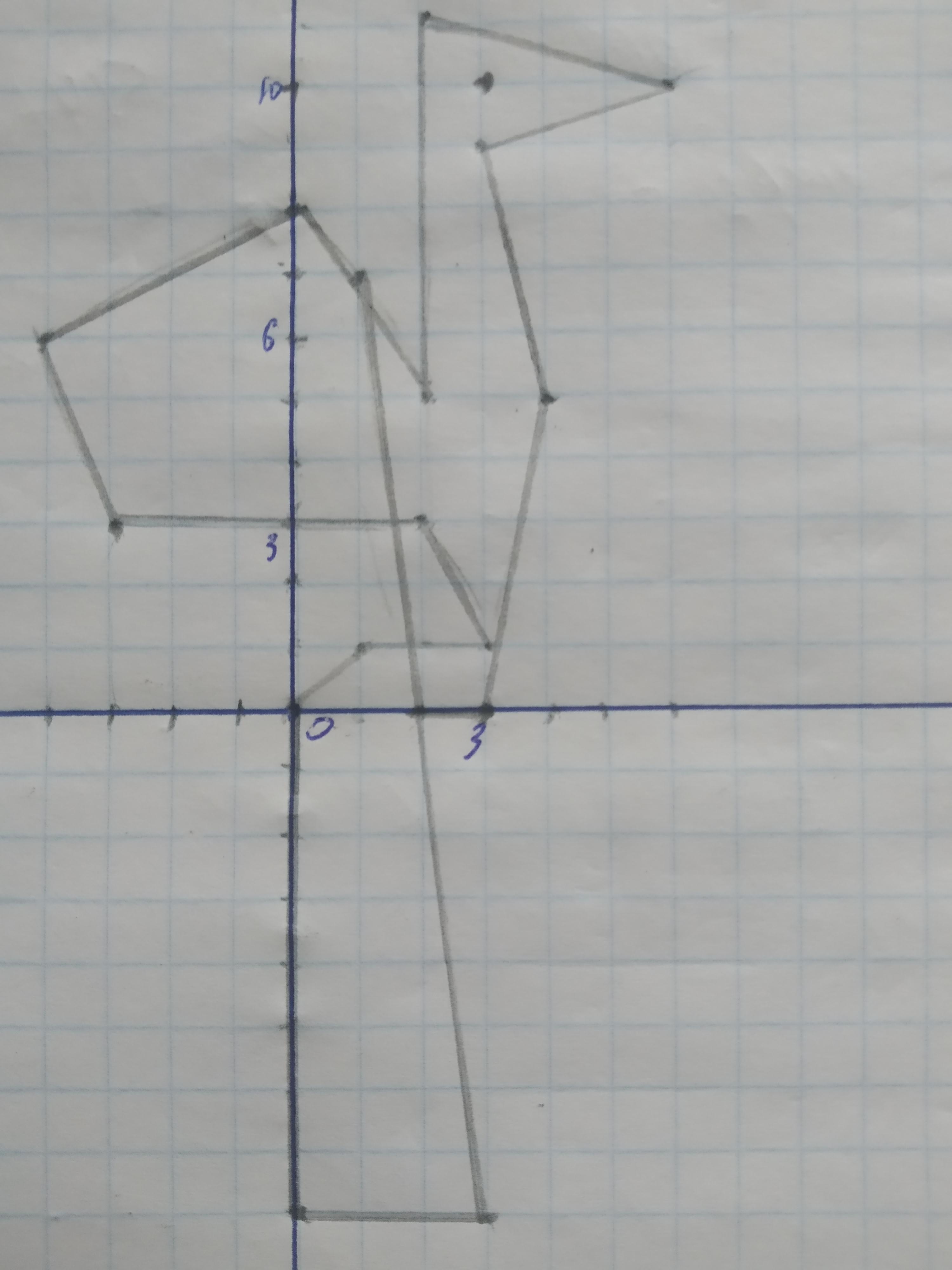 Зробити рисунок в системі координат: 1) (0; 0), (1; 1), (3; 1), (2; 3), (-3; 3), (- 4; 6), (0; 8), (2; 5), (2; 11), (6; 10), (3; 9), (4; 5), (3; 0),(2; 0), (1; 7), (3; -8), (0; - 8), (0; 0). 2) Око: (3; 10). Помогите пожалуйста!!!
