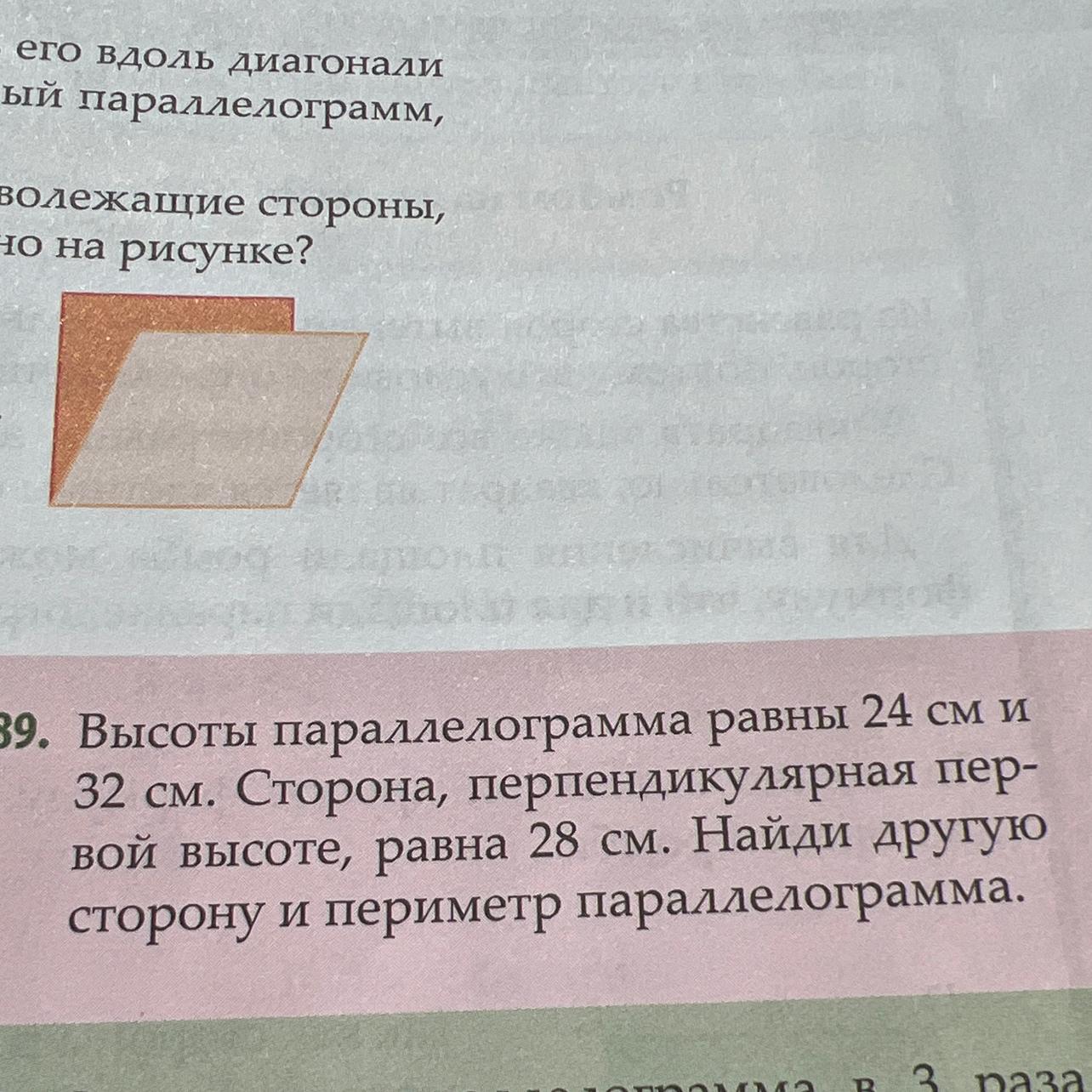 АД*ВК=28*24=672 (см. фото), также площадь равна АВ*ДЕ. То есть можем написать 672=АВ*32, отсюда АВ=672:32=21 см. Периметр равен