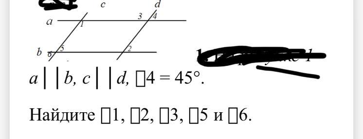 Ответ:1=45 2=45 3=135 5=135 6=135