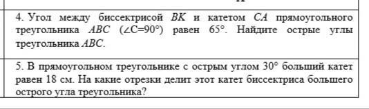 ∠В (ΔАВС)=180-90-30=60°; ВД - биссектриса (по условию), значит, ∠СВД=∠АВД=30°, т.е. ΔАВД - равнобедренный с равными боковыми сторонами АД=ВД. А в прямоугольном ΔДВС сторона ВД - гипотенуза, которая равна удвоенному катету СД, который лежит против угла в 30°. Имеем: 2СД=ВД=АД, 2СД=АД, т.е. сторона АС разбита на отрезки, относящиеся как 1:2. АС=18 см, значит, СД=6 см, а АД=12 см.