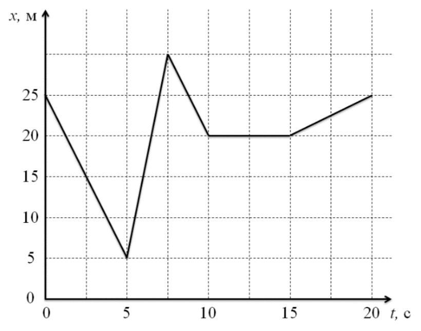 с 5 по 7.5 секунды предолено 30-5 = 25 метров