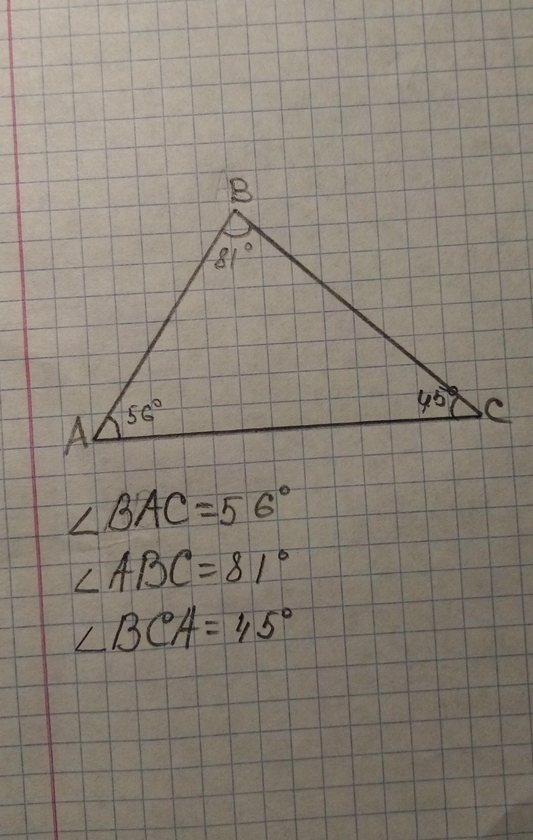 задание : постройте треугольник а в с если А = 4,5 см В = 5 см С= 6,5 см