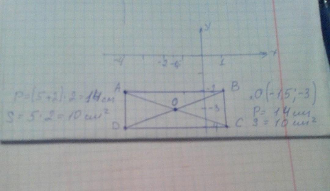 На кординатной плоскости постройте прямоугольник ABCD с вершинами: A(-4;-2); B(1;-2), C(1;-4), D(-4;4).