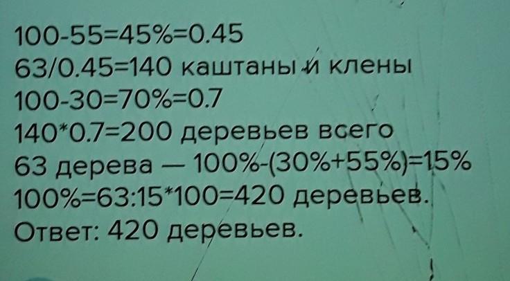 70% - 38,5% = 31,5 % дерев і це складають клени 63