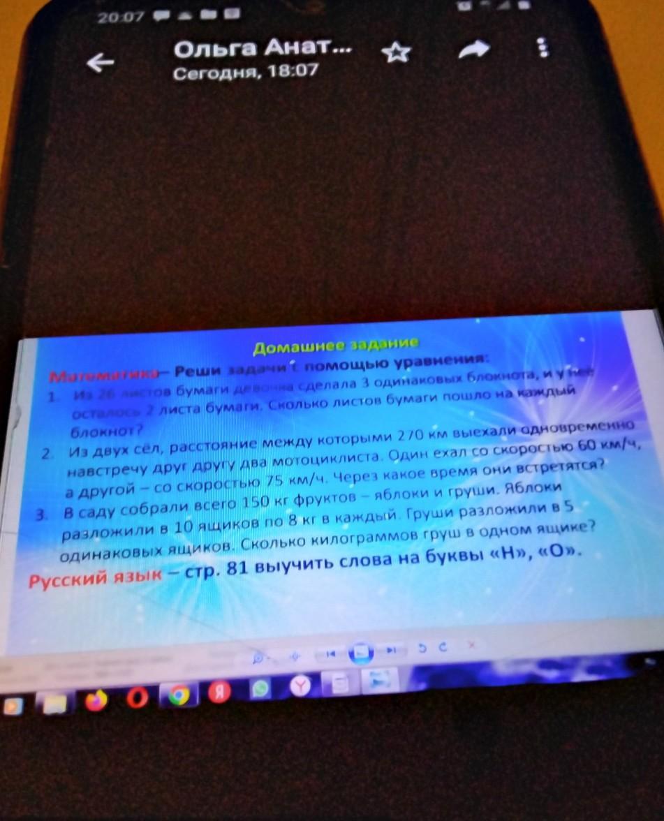 Реши задачи с помощью уравнения: Из 26 листов бумаги девочка сделала 3 одинаковых блокнота. ДАЛЬШЕ СМ. В ФОТО