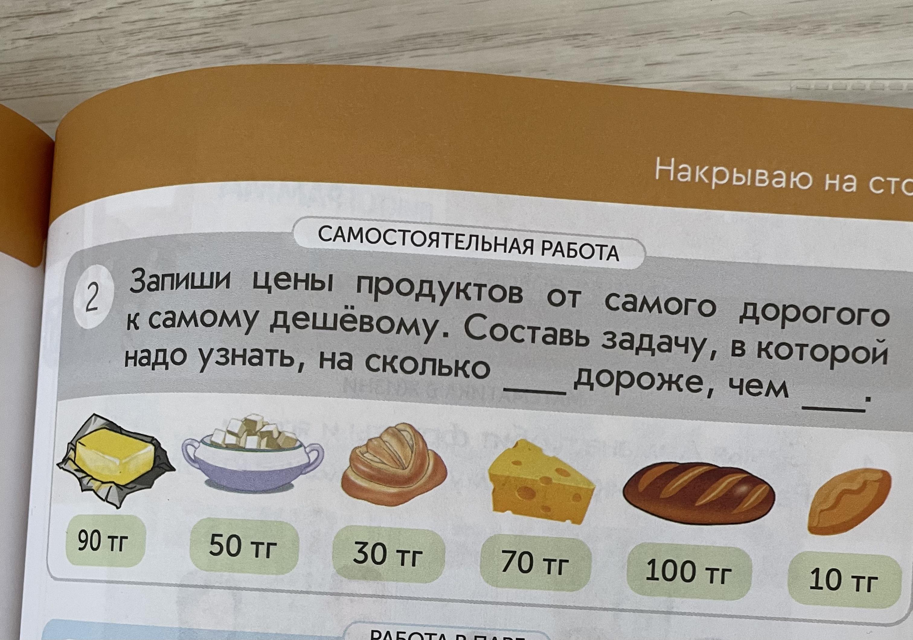 Запиши цены продуктлв от самого дорогого к самому дешёвому. СОСТАВЬ ЗАДАЧУ, в которой надо узнать на сколько дороже чем….