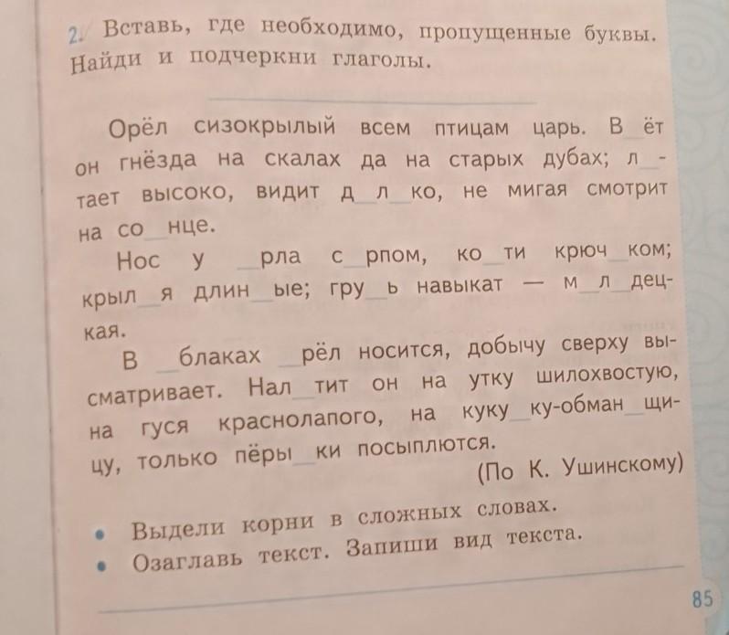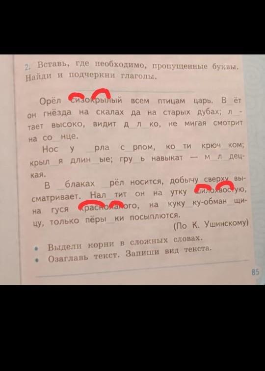Найдите и подчеркните глаголы,выделите корни в сложных словах и озаглавьте текст и запишите вид текста пожалуйста