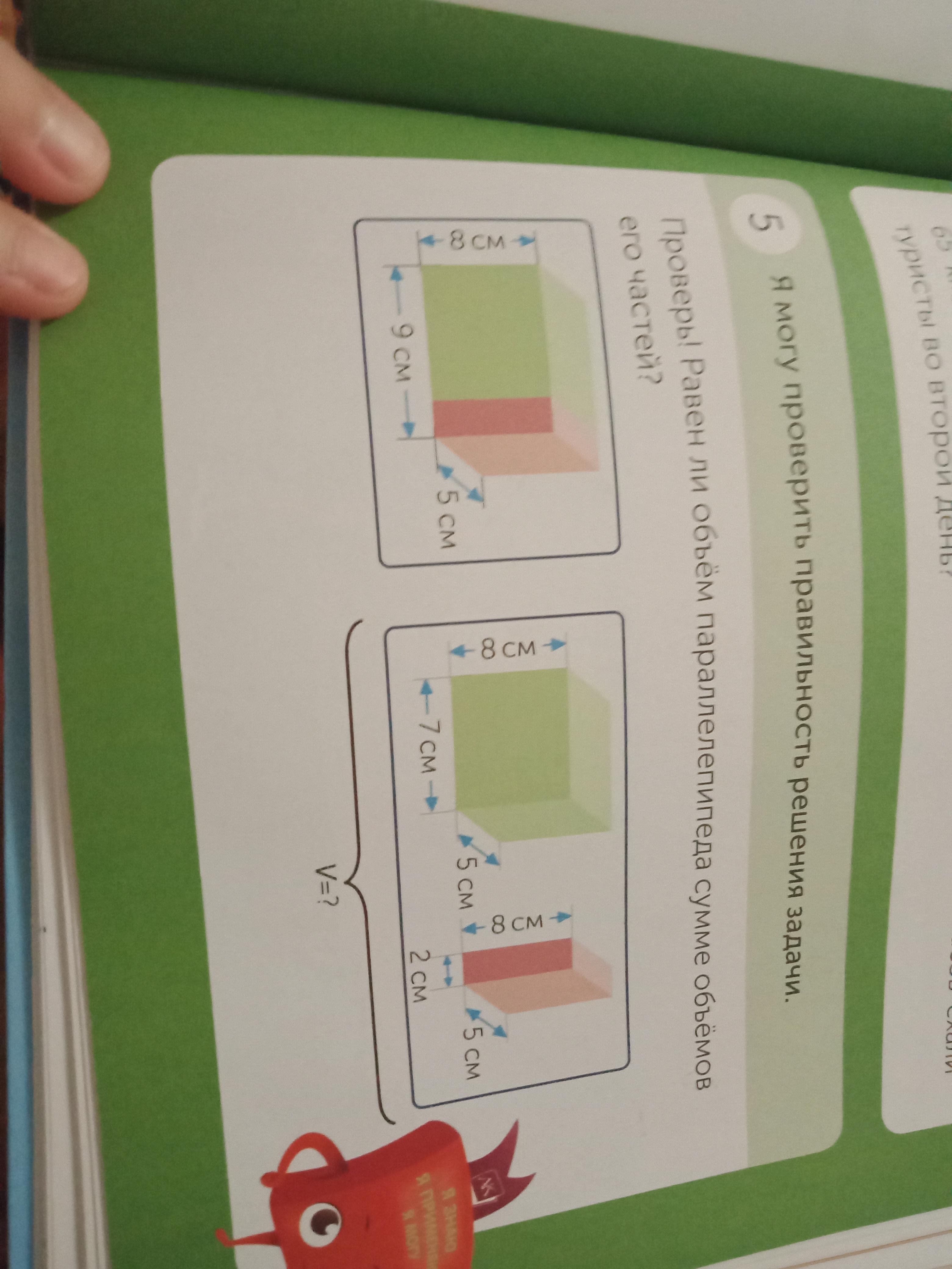 1) 8*9*5=360(см³)-объем всего параллелепипеда