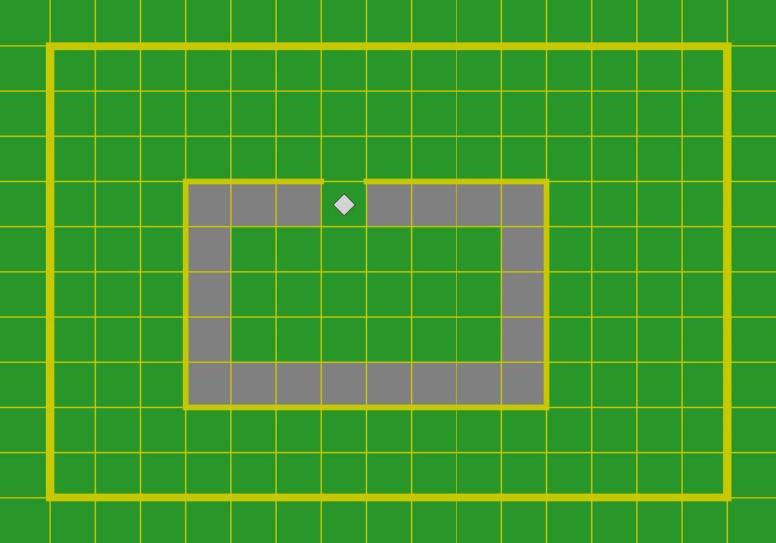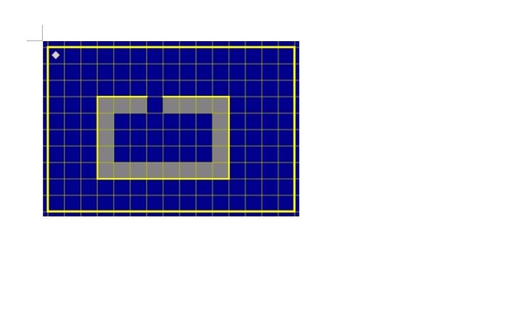 2. Где-то в поле Робота находится прямоугольник неизвестного размера, в верхней стенке которого имеется отверстие шириной в одну клетку. Робот из верхнего левого угла поля должен дойти до прямоугольника и закрасить клетки Внутри него по периметру, как показано на рисунке. П с