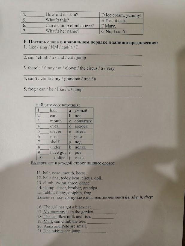16 – she, 17 – she, 18 – it, 19 – he, 20 – they, 21 – they.