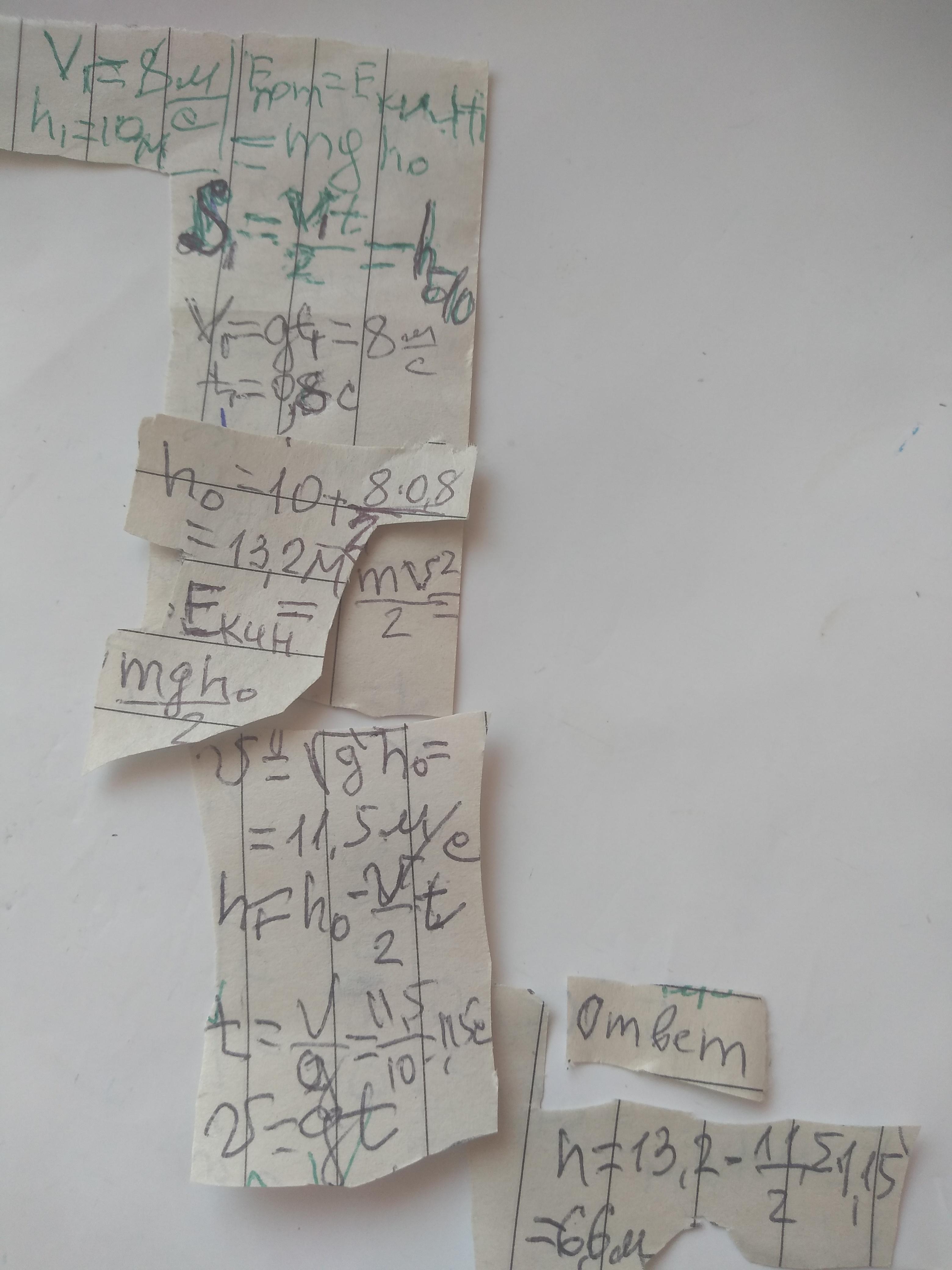 На якій висоті кінетична енергія вільно падаючого тіла дорівнює його потенціальній енергії, якщо на висоті 10 м швидкість цього тіла дорівнює 8 м/с