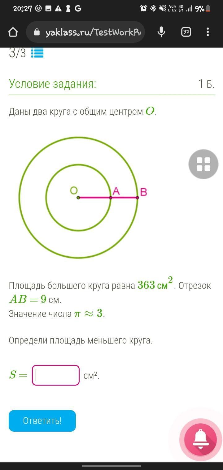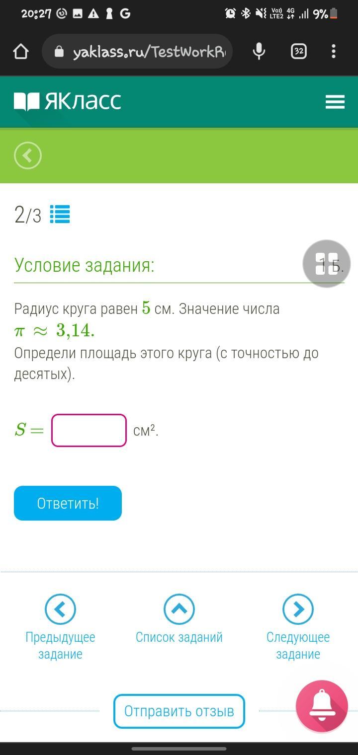 S = 3,14 * 5² = 3,14 * 25 = 78,5 см²
