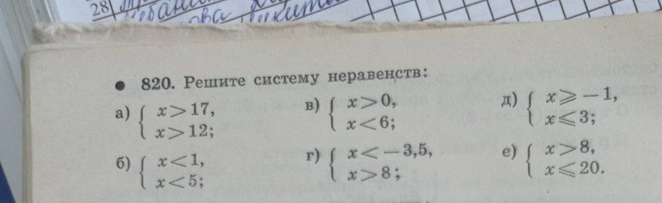 Решение системы неравенств: (17; +∞), пересечение (двойная штриховка).