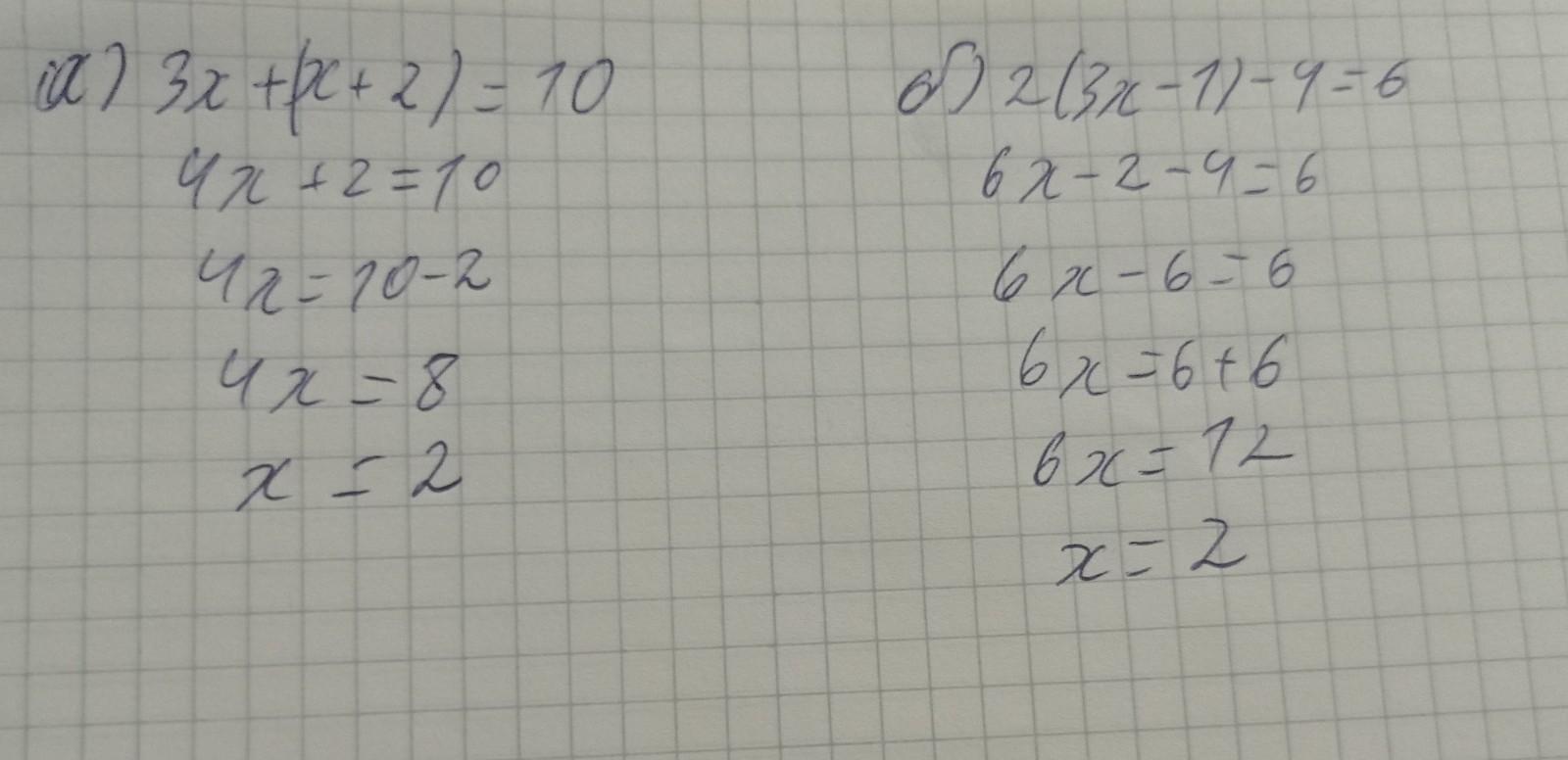 б) 2 (3x - 1) - 4 = 6;